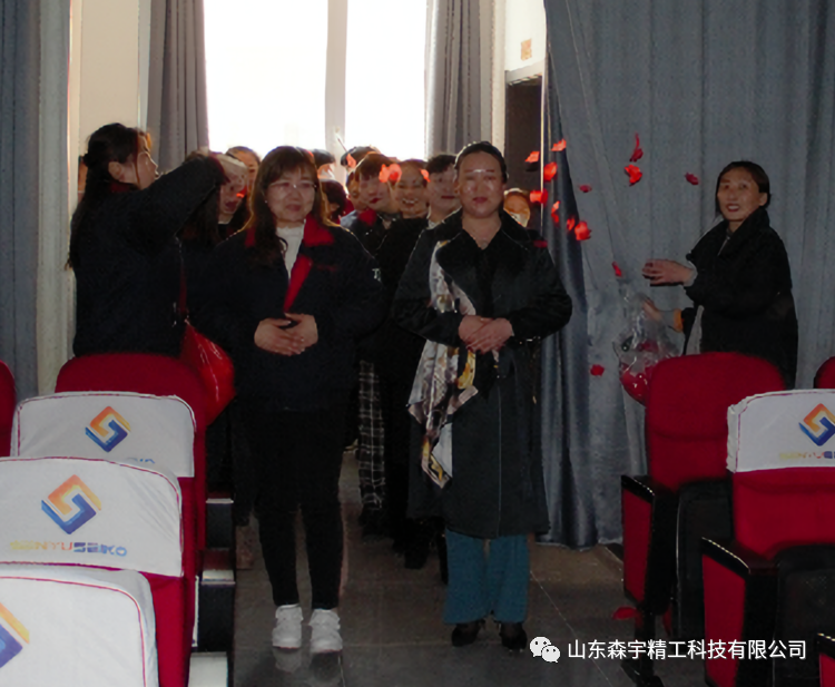 在舒緩的開場音樂中,公司125位女神們在山東森宇精工科技有限公司黨支部書記,副董事長梁娜的帶領(lǐng)下,邁著優(yōu)雅的步伐,款款地步入會場。